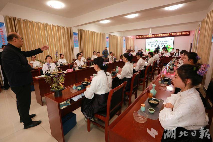 “这次培训太解渴了!”来自湖北堵河源茶叶公司的青年李园在接受记者采访时兴奋地说,“以前凭老经验,现在懂了新门道,怎么用数字技术监测茶园,怎么把我们的好茶叶卖出好价钱,心里更有底了!”课程设置精准对接竹山茶产业发展的现实需求,不仅涵盖茶叶加工、茶艺和茶文化,更拓展至品牌建设、数字农业应用等前沿领域,旨在为竹山打造一支既懂技术、又善经营、还会管理的新时代茶艺师队伍。